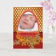 Celebração de Ovos Vermelhos e Gengibre para convite para bebês, adicione sua foto, cartão de convite em papel. Ovo Vermelho Bebê e Convite de festas Ginger com uma área frontal personalizada para adicionar uma foto e o nome do recém-nascido especial. Convite especial para cartão de saudação com tons dourados, vermelho e cores de raiz de gengibre natural. Um padrão dramático de círculos ouros em preenchimentos vermelhos escuros no fundo. Adicione o dentro de informações de eventos conforme necessário. Arte, imagem e direitos de autor © Shoaff Ballanger Studios.