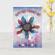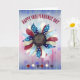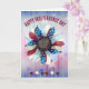 Este cartão de saudação apresenta flor vermelha, branca e azul com estrelas coloridas correspondentes na parte inferior. Preencha o texto de modelo para as saudações de cobrir e dentro, remova o texto ou edite usando a ferramenta design para selecionar um estilo de fonte, tamanho e cor desejados.