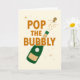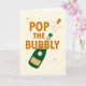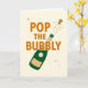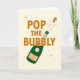 Este cartão diz Estoure a Bolha com uma ilustração de uma garrafa de vinho brilhante. Perfeito para um cartão de felicitações de casamento ou noivado, celebração de Ano Novo, aniversário ou data comemorativa especial.