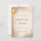 Cartão Celestial de Salvar a Data Nuvens de Salva Rosa Dourado Sol Lua Estrelas Constelação