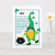 Um cartão de boas-vindas para sua sobrinha na Rua. Dia de Patrick, com um lindo duende dançante, segurando uma pedra de xamelo, ao lado de um pote de ouro. Há uma borda verde-escura, dupla linha e a Oração Celta original, em letra verde, ao lado do duende. O duende tem um chapéu muito alto, em um padrão verde, uma barba grande de gengibre, um nariz enorme, capas e meias listradas e calçados pretas com fivelas para combinar com sua faixa de ódio. No topo, em letras negras, está a palavra "NIECE" e a mensagem dentro é fácil de personalizar ou apagar.