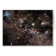 No centro da Via Láctea a galáxia reside um buraco negro. É cercada por um disco do gás e da poeira e orbitada por estrelas maciças. Mais distante para fora (na esquerda) é o grupo denso de estrelas azuis chamadas o conjunto dos arcos. De uma ilustração digital criada para o compartimento da natureza.