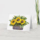 Esta é uma pintura digital de um cesto bonito com girassóis brilhantes. Faz um buquê adorável e uma carta adorável. Há um pensamento curto em você dentro verso.