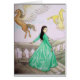 As aguarelas Art. Céu são de uma senhora bonita que anda abaixo das etapas de um castelo no céu com pegasus ou vôo do pegasi no fundo…