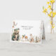 CORRESPONDENDO ÀS CRIATURAS DE TERRA NOVA, OBRIGADO | Um convite à chá de fraldas neutro em termos de gênero com bébés fofos e doces num cenário de floresta de pinheiros de montanha. Um urso adorável com uma coroa foliar sobre a cabeça, um veado, raposa, coelho, esquilo e um passarinho são cercados por cogumelos e delicadas flores silvestres com verde foliar primavera ou foliar de verão. O interior tem a foto do seu bebê facilmente carregada e a informação de contato. Existe uma coleção completa de produtos disponível para coordenar: MSP0104