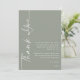 Chá de fraldas De Sessão De Fotografias De Script Rotulado Obrigado. Disponível digitalmente ou impresso. Estilo contemporâneo com Obrigado girado e no lado esquerdo e personalize facilmente o resto do texto para seus próprios detalhes. Você pode alterar as cores do texto e do plano de fundo se desejar, por meio da opção editar mais. Substitua a foto da amostra no verso por seu próprio favorito do seu chá como guardião para seus convidados.