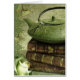 Um cartão de estilo vintage com livros e pote de chá, projetado para inspirar! www.unlaceddreams.yolasite.com