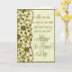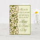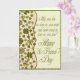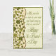 Dezenas de folhas tridimensionais de shamrock que chuvam o lado esquerdo desta Rua personalizável. Cartão do dia de Patrick. Do lado direito, o velho ditado irlandês: Que você viva o tempo que quiser, e nunca queira tanto tempo quanto você viver" mais "Rua Feliz. Dia do Patrick" em palavras verdes, texturizadas em metal.
