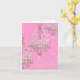 Bonito e cintiladores cor-de-rosa contra aquele maravilhoso design de papel de parede brocado de rendas. Tão rosa e feminina. Impresso com os papéis brilhantes do Zazzle é tão divertido de enviar e receber. Há um quarto candelabro no canto na superfície escrevendo. Esta é da minha linha de papelaria para Paper Nosh, uma design original de Paulette Kinney. Para produtos personalizados, entre em contato com a Paulette em www.PaperNosh.com