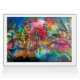 Design de Gráfico Original de Alessandro Lumini Colorida e expressiva pintura a aquarela de 1988 .Cavaleiros joujando em cavalo em cor azul brilhante verde,rosa,fuquesa,roxo,amarelo alaranjado,branco, castanho.