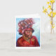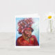 cartão de nota com a mulher do afro-americano com igreja vermelha