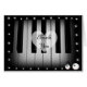 Teclas de piano com estrelas brilhantes e olhos observando.