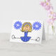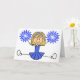Cheerleader nas cores da escola de azul e branco. Vai, Equipe!