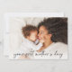 Envie um cartão especial para comemorar o primeiro Dia de as mães da Mãe. Este design personalizado apresenta uma foto horizontal de cheio que você pode substituir pela foto desejada. Texto moderno manuscrito na parte inferior da frente do cartão diz "seu primeiro Dia de as mães". A parte de trás da placa tem uma aquarela feminina em rosas cor-de-rosa e verde em volta da sua mensagem escrita. Você pode personalizar a mensagem com sua própria redação ou usar a redação como escrita.