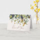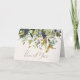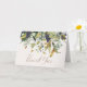 Um chic Obrigado sob um cortador de ouro de uvas roxas mais escuras, sábio e folhas verdes profundas. Inscrito com uma fonte exclusiva no cartão de estoque pessoal de imagem de pebble impressão.