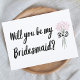 Convide suas damas de honra com estilo usando esta elegante placa de proposta com um buquê desenhado à mão, enfeitado com um arco clássico preto-e-branco. As sutis flores cor-de-rosa adicionam um toque suave e feminino, perfeito para um convite do partido moderno, mas eterno. Este cartão é a maneira ideal de perguntar, "Você será minha dona de ponte?" enquanto define o tom para uma celebração sofisticada. Adaptada à noiva legal e contemporânea, esta design incorpora elegância subestimada com um toque personalizado.