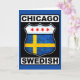 Chicago, design Sueco, ao estilo de uma placa de rota legal americana. O texto Chicago Swedish fica no topo e no fundo, com a bandeira da cidade de Chicago e a bandeira da Suecia dentro. Excelente para chicagoas de ascendência sueca e para ex-pats na cidade de Windy.
