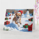 Cartão Chihuahua correndo em neve com chapéu de Natal