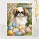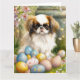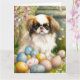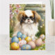Cartão Chin japonês com ovos de Páscoa