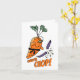 Caratê de cenoura bonita cortando um feijão roxo prendendo todos os feijões.