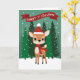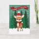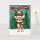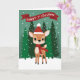 This delightful Christmas card showcases a baby deer adorned in a hat and scarf. The serene snowy wooded area serves as the backdrop, while the text reads, “Baby’s 1st Christmas.”