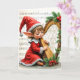 A cute Christmas sprite delicately playing a harp, set against a backdrop of beautiful sheet music