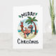 Funny Christmas design featuring an illustration of Santa Claus relaxing at the beach under a palm tree on a little island. A perfect match for Christmas in July as well as for real Christmas in December.