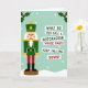 On this Christmas card, you'll find a cheerful nutcracker in a fancy green outfit with gold details, red pants, and black boots, smiling big with a white beard. The background is a soft green with white snowflakes, making it feel like winter❄️. Green holly with red berries sits at the top corners, adding to the festive look🌿. One side has a joke: "WHAT DO YOU CALL A NUTCRACKER WHOSE PANTS KEEP FALLING DOWN?" in green and red🤣. It's funny and makes you smile😄! This card is perfect for spreading holiday joy and making people laugh🎄🎁.