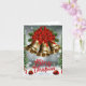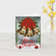 The Christmas greeting card features an elegant design with golden bells as the main image. These bells, topped at the top by a bright red mono-bow, reflect the beauty and joy of the Christmas season. The contrast between gold and red creates a festive and attractive combination. Inside the card is the touching phrase: "Happy holidays and may the spirit of Christmas always surround you!" that you can customize to your liking. This card conveys a message of good wishes and warmth, inviting you to share the magic of Christmas with those to whom it is sent.