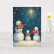 The greeting card features a trio of snowmen against a serene winter backdrop, exuding infectious cheer and festive vibes 🎅🏼🎄🎁 Their joyful expressions and whimsical details, like carrot noses and rosy cheeks, add an endearing touch. The deep indigo-teal sky dotted with stars and a radiant golden star creates a picturesque, dreamlike setting. The snowmen holding up vibrant red signs that read "Joy To The World" offer a bold contrast and convey a heartwarming message. Perfect for spreading holiday cheer, this card is sure to bring smiles and warmth to anyone who receives it.