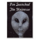 Um lápis colorido de três Alienígenas de Cinza ETs contra um céu estrelado e preto.