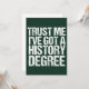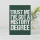 Acredite em mim, tenho um diploma de História. Um cartão de humor para um historiador depois de formando de faculdade ou universidade. Uma citação engraçada sobre um cartão verde giro.