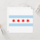 Esta design apresenta a bandeira civil de Chicago, que consiste em dois bares horizontais azuis-claros, ou faixas, sobre um fundo branco. A cidade de Chicago é a cidade mais populosa do estado de Illinois nos Estados Unidos, e uma das cidades mais populosas em todos os Estados Unidos; é também a cidade mais populosa no meio oeste dos Estados Unidos. Chicago é a sede do Condado de Cook. Chicago é conhecida como "Cidade Vergonha".