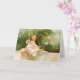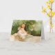 Uma carta de saudação vintage encantadora, com um belo anjo sentado em uma parede e tocando a harpa cercada por borboletas, pintada pela ilustradora e artista comercial americana Ellen Hattie Clapsaddle.