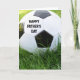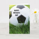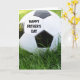 Uma bola de futebol preto e branco clássica na grama verde alta do verão com o dia dos pais feliz das palavras. Totalmente customizável para que você personalize como você por favor! Aperfeiçoe para o pai do fã de esportes!