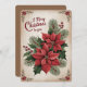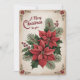 Este "Cartão Feliz de Férias de Natal" é um design charmoso e elegante que incorpora o espírito da época de Natal. A carta apresenta uma incrível peça central de poinsetos vermelhos vibrantes, rodeada por folhas verdes escorridas e ramos de pinheiros. Amoras ricas e delicados sotaques brancos nas folhas adicionam profundidade e sofisticação ao design. A frase "Um Feliz Natal para você" é elegantemente escrita no topo, criando uma mensagem calorosa e convidativa. O fundo do estilo vintage, completo com um tom bege sutil e texturas sutis, melhora a sensação de eterno da placa. Ideal para enviar desejos sinceros aos entes queridos, este cartão é perfeito para enviar e receber cartas ou ofertas durante a época de Natal.