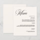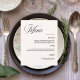 Um fundo colorido creme. Personalize e adicione seus nomes, data e menu. Texto preto. 1 folha = 1 menu impresso borda a borda.
