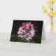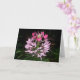 Cartão de saudação do vazio com o lindo Cleome floresce na fonte