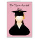 Foto doce, de clip-art, de uma garota vestida de boné e vestido para graduação, é apresentada neste cartão de saudação. Na frente do cartão lê-se, "No seu Dia Especial" e na dentro diz-se, "Que seu futuro seja brilhante, Estamos muito orgulhosos de você, Parabéns na sua graduação!". Um doce cartão para enviar a um membro da família ou amigo!