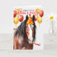 Um cartão de aniversário divertido para o amante da raça do cavalo Clydesdale com um cavalo de excelente vestido para uma festa de aniversário.