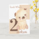 Este design com uma adorável aquarela com as palavras "Olha quem é", o número 2 e o seu próprio nome. O fundo tem quatro blocos de cores neutras. O texto da dentro diz, "Não importa o quanto o seu bolo de aniversário tenha gelo, ele não pode ser mais doce do que você. Feliz primeiro aniversario!" Clique em "personalizar este modelo" para alterar o nome e qualquer uma das palavras. Se você precisar personalizar este produto ou qualquer outro produto nesta loja, envie um e-mail para zazzlevibes@gmail.com. Visite nossa loja www.zazzle.com/CuteKidStuff para ver nossos sacos de presentes, papel de embrulho, papel de tecidos, convites, cartões de aniversário, presentes e muito mais. Obrigado, Karen Hall