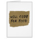 O codificador à procura do trabalho… codificará para a comida. O dinheiro é opcional. Excelente para programadores, cientistas de computador e engenheiros à procura do emprego, da comida, ou apenas de um grande riso.