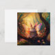 Um coelho branco com asas de fada coloridas senta-se num galho numa floresta encantada, cercado por luz brilhante e folhas em queda. A atmosfera vibrante e mágica aponta para uma aventura fantástica.