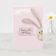 Coelho bonito com bolha de fala rosa num céu cor-de-rosa com nuvens brancas para o 8º aniversário.