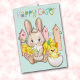 Cartão Coelhinho de bebê felz pascoa e Pintinho com Daffo