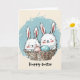 Cartão Coelhinhos bonitos em uma placa de Páscoa de soque