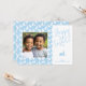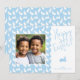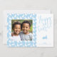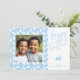 Celebre a Páscoa com este cartão de foto personalizável projetado pela Destei. Um lado apresenta um espaço quadrado para sua foto que é emoldurado por uma fina borda branca e colocado contra um fundo azul claro com silhuetas de coelhos brancos. O outro lado tem um fundo branco com “Feliz Páscoa!” em um texto azul inclinado e divertido, uma silhueta de coelho azul deitado e espaço para adicionar um nome e ano. A parte de trás do cartão repete o padrão de coelhos brancos sobre o fundo azul, criando um design coeso perfeito para saudações de primavera.