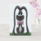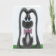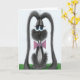 Este cartão adorável de Páscoa apresenta Jack, o coelho cinza adorável vestido com sua gravata borboleta rosa favorita. Personalize este lindo cartão de Páscoa adicionando ou excluindo seu texto para deixá-lo em branco. É baseado em uma peça de arte original por © One Artsy Momma.