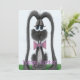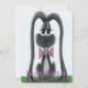 Este cartão de saudação adorável da Páscoa apresenta Jack, o coelho cinza adorável vestido com sua gravata borboleta rosa favorita. Personalize este cartão de saudação bobo adicionando ou excluindo seu texto para deixá-lo em branco. É baseado em uma peça de arte original por © One Artsy Momma.