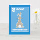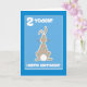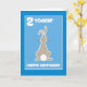Um cartão de aniversário divertido para uma criança de dois anos, com um coelho bonito em fundo azul e "2 hoje - Parabéns" em letras brancas. Sinta-se à vontade para personalizar a mensagem dentro.